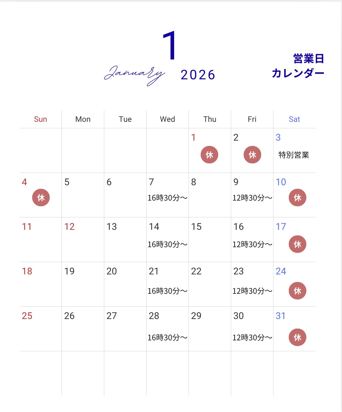 1月の営業日になります!